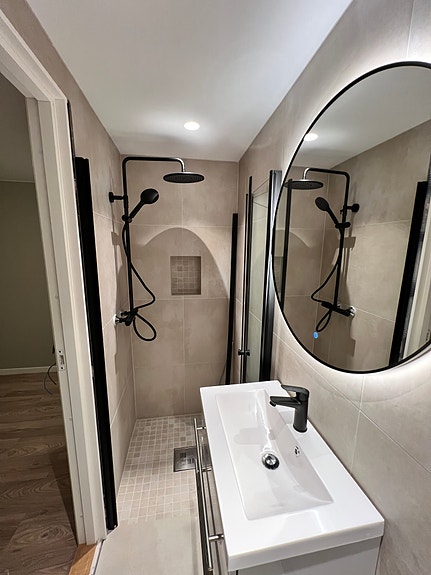 Vi holder på å pusse opp leiligheten i underetasjen. Leiligheten er klar til februar og leien er inkludert strøm, internett og hvitevarer. Det er nye gulv med varmekabler og helt nytt bad. Leiligheten inneholder gang, stue m/kjøkken, et soverom og bad. Det er egen inngang og det skal bli egen adkomst fra veien til leiligheten. Huset ligger i et stille boligstrøk med kort vei til både skogen og sjøen. Vi bor midt imellom buss og tog (10 min gange) og det er gangavstand til Sandvika med Storsenteret og restauranter. Det tar 20 min med tog til Oslo.