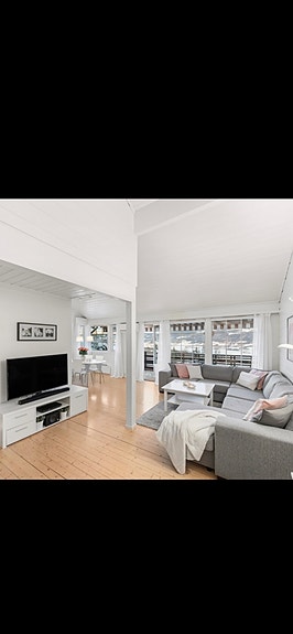 Innvendig fremstår boligen som godt vedlikeholdt med lyse, pene overflater, samt god takhøyde i stua. Stua har slipte, originale tregulv og varmes opp av en nesten ny varmepumpe, samt en panelovn. Kjøkkenet har godt med skapplass, samt komfyr, oppvaskmaskin og kjøleskap med frysedel. Leiligheten har to soverom (det ene med stort garderobeskap), eget toalettrom og bad med dusjkabinett. Det er godt med lagringsplass i en innebod + på et lite loft. Leiligheten har eget vaskerom. Leietager må selv sørge for vaskemaskin. Leiligheten leies ut delvis møblert (møblene samsvarer ikke med bildene). Kommunale avgifter er inkludert i husleien. Strøm og bredbånd er ikke inkludert. Ledig omgående.