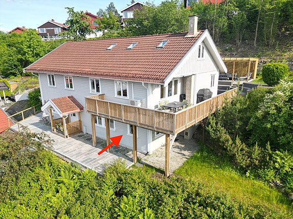 Utleiedelen er en del av en enebolig og har egen inngang med en liten hageflekk rett utenfor. Utleieleiligheten har en gjennomtenkt planløsning som består av entré, kjøkken- og stueløsning med nye hvitevarer, to soverom, bad samt egen innvendig bod. Det er varmekabler i kjøkken-/spisestue, ett av soverommene og på badet, noe som gir god bokomfort året rundt.
