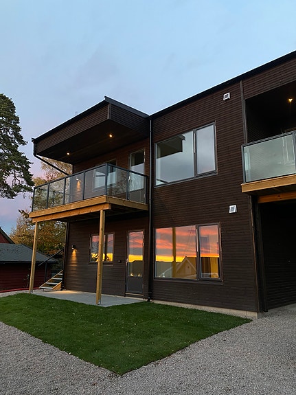 Strøken leilighet oppført i leilighetskompleks med 3 boenheter.