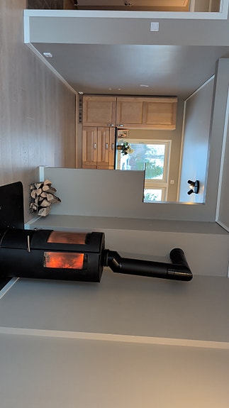 Leiligheten er utstyrt med varmeovner itillegg til vedfyring.