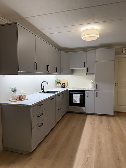 God standard med solid klikkvinylgulv på stue, kjøkken og soverom.