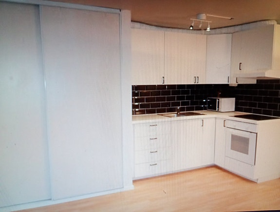 Leiligheten ligger i første under etasje 66 kvm, stue med møbler og kjøkken med hvitevarer og stor spise bord med stoler, to soverom, fint flislagtbad med varmekabel og vaskemaskin, utgang til innbygd tresse og stor balkong.
