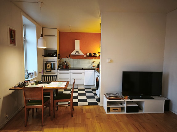 Leiligheten ligger rett ved Tøyen torg med alle butikkene, cafeene og en T-bane stasjon. Jeg har bodd i leiligheten siden 2023 og har trivdes her enormt bra. Det er to soverom, en hyggelig stue med kjøkken, et praktisk bad med varme i gulvet og en balkong. Soverommet og selve leiligheten er fult møblert av meg, så du må gjerne ta med noen egne møbler etter avtale. Det er en smart TV, platespiller, et fullt utstyrt kjøkken. Vaskemaskinen, ovnen og oppvaskemaskinen er splitternye. Det er også en kjellerbod tilhørende leiligheten.