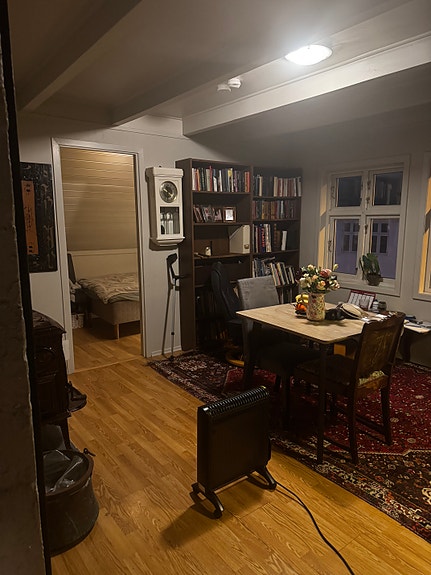 Leilighet i Stavanger sentrum med et soverom 2m bredt og et soverom 1,4 m bredt, begge m skråtak, stue, bad og kjøkken og stort loft. Gateparkering med soneparkering. Umøblert med noen hvitevarer; oppvaskmaskin, komfyr og kjøleskap. Badet har plass til vaskemaskin. Vedovn i stua. Ikke røyk og ikke dyr.