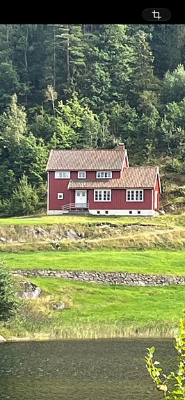 Huset ligger som et av to hus her på gården. Det ligger fint til med utsikt mot ferskvann. Det passer til familie og enslige. Det er mulig og bare bruke en etasje, om ønskelig. Det er fine turområder, bade og fiske muligheter. Det er også dyr her på gården. Derfor ønsker vi ikke andre husdyr her.