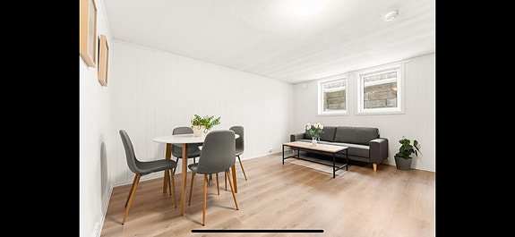 Kjellerleilighet til leie stort stue stor bad peis og varmekabel i stue