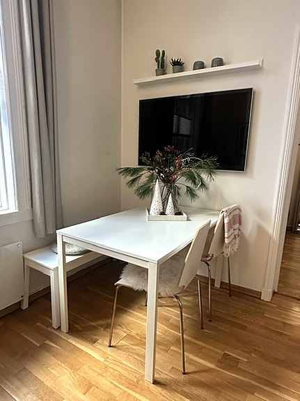 2-roms leilighet beliggende på Vika i en standsmessig, klassisk gård. Rolig område, tilbaketrukket fra trafikk, og med parkområde på utsiden av gården. Leiligheten består av kjøkken i åpent rom, soverom, bad og bod. På kjøkkenet medfølger hvitevarer som kjøleskap, oppvaskmaskin, mikrobølgeovn, komfyr og platetopp. På bad står det vaskemaskin og tørketrommel.
