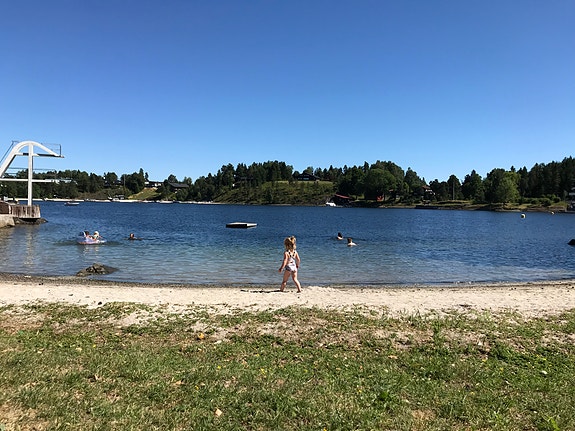 Leiligheten ligger i 1. etasje i en nyere enebolig i et rolig område rett ved sjøen. Det er kort vei til buss, og ca. 15 min. gange til Sandvika sentrum med butikker, restauranter, kino med mer. Det tar ca. 10 minutter å kjøre til Oslo. Det er også kort vei til Vestmarka.