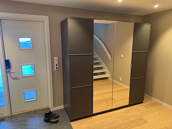 - romslig hall og inngangsparti med fliser og garderobeskap