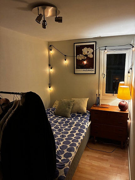 To rom er ledig. Ene på 11 m2, det andre på 9m2 Første har vindu og plass til seng, skap hører med rommet og det er god plass til oppbevaring. Det andre er noe mindre, utstyrt med seng og kommode, samt plass til klesstativ. Leiligheten har fellesareal med sofa, lenestol, spisebord, TV, bokhylle og piano, samt en vinterhage med sofabenk og arbeidsplass som egner seg godt til å jobbe eller tegne ved.