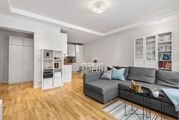Leiligheten holder god standard og det ble lagt nye parkettgulv i entré, stue og kjøkken høsten 2018