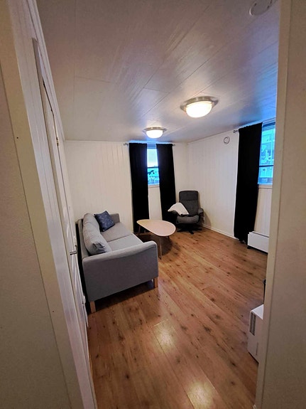 Delvis møblert med bl.a sofa, tv-benk, stuebord, vaskemaskin, komfyr og kjøleskap. Busstopp og sundbåt like ved - Nærhet til dagligvare.