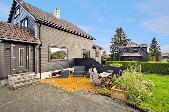 Boligen har terrasse, hage, peis/ildsted, sentralt , barnevennlig, turterreng.