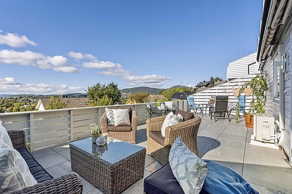 • Stor terrasse på 41 m² med sol fra formiddag til sent på kveld