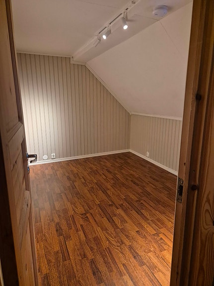 Leilighet i øverste etasje. 75 kvadratmeter med to soverom, stue, bad og kjøkken. Kort vei ned til både by, tog og andre nødvendige fasiliteter. Følger ikke med strøm da dette blir lagt til i leieprisen.