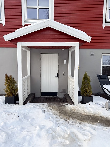 Leiligheten deler yttergang med en annen leilighet , og disse har felles terrase på utsiden