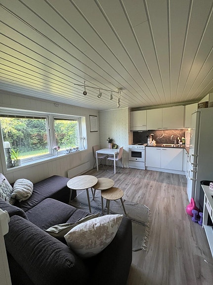 Hybelleilighet med egen inngang til leie i rolig villastrøk. Ledig etter avtale. Hybelleiligheten ble ferdig totalrenovert mars 2020, med unntak av badet. Leiligheten inneholder bad, soverom, gang, vindfang og kombinert stue/kjøkken. Kjøle/fryseskap, komfyr, oppvaskmaskin og vaskemaskin er inkludert. Hybelleiligheten kan også delvis møbleres etter nærmere avtale. En biloppstillingsplass etter avtale.