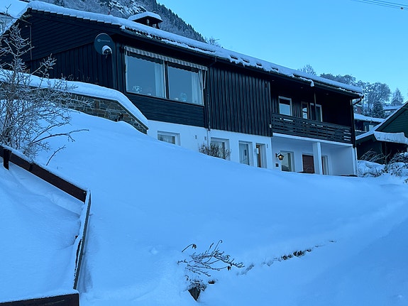 Stor einebustad til leige i roleg strøk sentralt på Voss med 4-5 minutt gange til Voss Stasjon, Voss Resort (Gondolbane) og sentrum generelt. Samstundes har ein nydeleg utsikt over Vossebygda og Vangsvatnet. Huset vert leigd ut fullt møblert, men dersom ein ynskjer å bruke eige møblement (heilt eller delvis) så kan dette avtalast. Huset er bygd i 1967 og inneheld stor stove med matstove og har utgang både til stor terrasse og til altan. Vidare er det 6 soverom (3 romslege, 3 små), bad med stor, nyleg oppussa dusjnisje , 2 separate toalettrom, hall, vaskerom med tørkeskap, boder og kjølerom. I tillegg har huset garasje. Det er parkett på dei fleste romma i 2.etasje. Tregolv i hall i 1.etasje og ellers golvbelegg. Huset er oppvarma elektrisk med varmepumpe (grunnvarme) og i tillegg nyinstallert peisinnsats som tilleggsvarme på kalde dagar. Det er innlagt fiber. Huset har alt ein har behov for av utstyr til kjøkken og matstove osb. og reidskapar til hage (inkl. grasklippar og snøfresar).