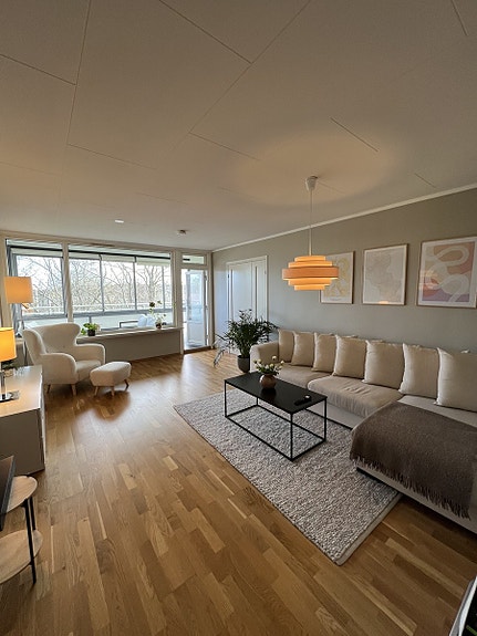 - Lys og romslig stue med tilgang til stor innglasset balkong på ca 20 kvm