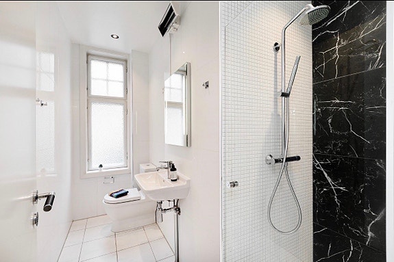 Leiligheten ligger på ca 180kvadrat, og det er 2 bad i leiligheten. Alle jentene sminker seg på rommet så det er ingen problematikk med opptatte bad om morningene;)