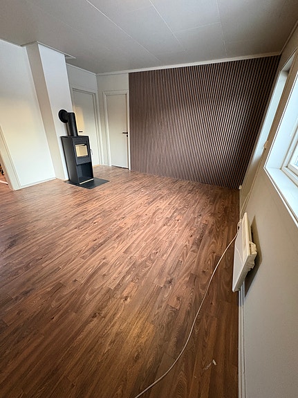 Pen fireroms leilighet til leie sentralt på Halmstad. Ligger i en rolig, enveiskjørt gate. Her får du tre soverom hvor to har skapplass, delvis åpen stue/kjøkken løsning, egen bod til lagring, veranda, stor uteplass og felles hageområde. Oppussede overflater og nymalt. Egen parkeringsplass.