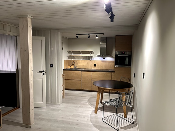 Vi har pusset opp utleie-leiligheten i huset vårt, og ønsker ny leieboer(e). Den er innflytningsklar. Leiligheten har varme i gulvet på oppholdsrom og bad, en praktisk bod med godt med hyller og en liten fryser. Nytt dusjkabinett og vaskemaskin. Kjøleskap og ovn på kjøkken. Soverommet er romslig.