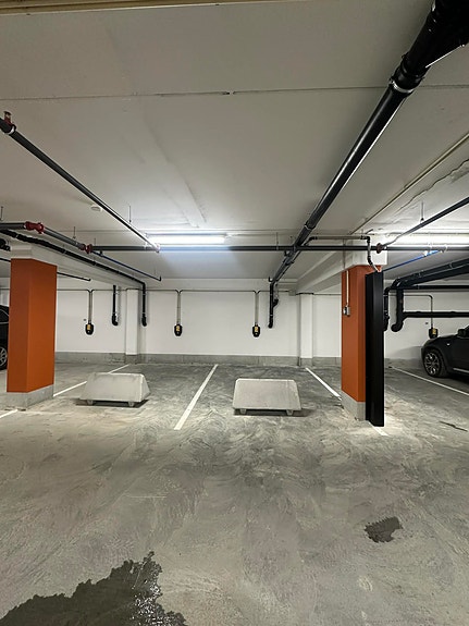 P-plass i det populære boligprosjektet Basseløkka i Frostaveien 3b, leies ut. P-kjelleren ble bygget ferdig i 2025.