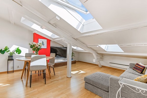 Grünerløkka: Lys studioleilighet i toppetasje – 57 kvm gulvareal