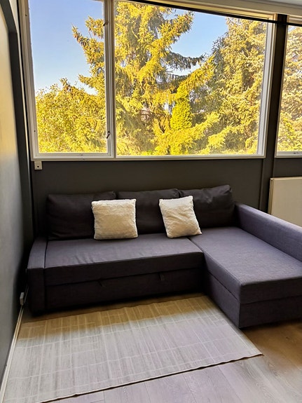 Leiligheten er delvis møblert og følger med en praktisk sovesofa og en kommode for oppbevaring. I tillegg følger det med hvitevarer som vaskemaskin og en kjøleskap med fryseboks.