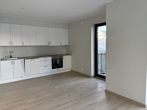 Leies ut delvis møblert med garderobeskap, dobbeltseng 160 cm (ikke overmadrass), sofa med bord, kjøkkenbord med fire stoler, mediamøbel og hylleløsning i bod. Vaskemaskin på bad og integrerte hvitevarer på kjøkken (kombiskap, oppvaskmaskin og stekeovn). Alle overflater er malt i fargen tidløs, eikeparkett på gulv, lyse fliser på bad. Hjørneleilighet med mye naturlig lysinnslipp.