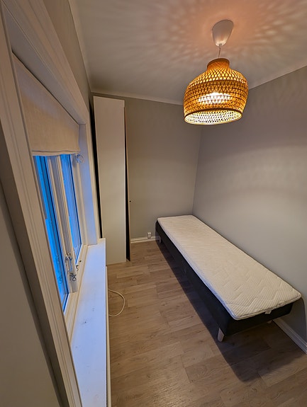Vi leier ut et nyoppusset rom i bofellesskap. Rommet er 6 kvm stort og møblert med en 80x200cm seng, et garderobeskap. Vi har også et vegghengt bord som kan monteres om ønskelig.