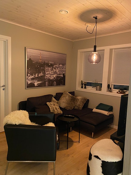 40m2 leilighet med entre, stue/kjøkken, bad og to soverom eller ett soverom og kontor. Leiligheten er fullt møblert med kjøkkenutstyr og alt som behøves. Parkering og uteplass, 1. etg i hus fra 2020. Vannbåren varme.
