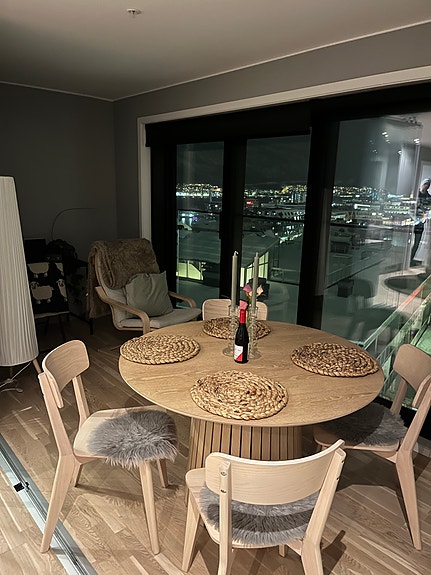 Kjempekoselig leilighet i sentrum, 7. etasje med flott utsikt over byen. Fullt møblert. 2 soverom. Hvitevarer som vaskemaskin, tørketrommel og oppvaskmaskin. Parkering.