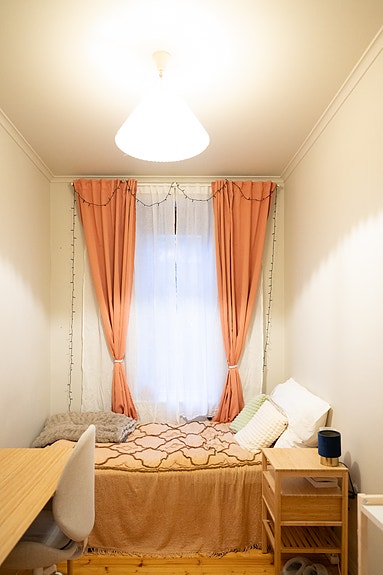 Rommet som leies ut er ca. 10 kvm, nymalt i 2025, har innebygd klesskap og vender mot rolig bakgård. Det er god plass til seng, skrivebord og annet møblement.