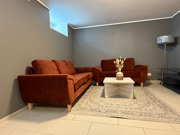 Nyoppusset og møblert moderne kjellerleilighet til leie