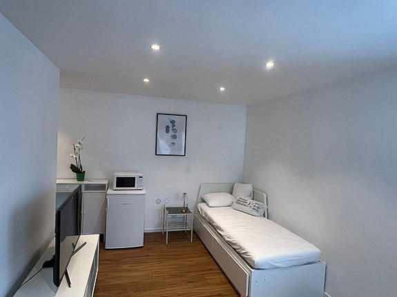 En helt ny og koselig et-roms hybel. Den er møblert men uten kjøkken. Strøm og internett er inkludert.