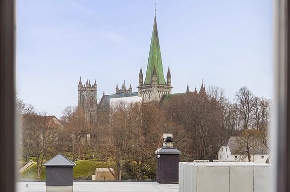 Denne møblerte 3-roms leiligheten (61 m²) ligger i 3. etasje og har gode planløsninger, romslig stue, to soverom og store vindusflater som slipper inn rikelig med dagslys. Her får du både sjarm, funksjonalitet og utsikt, blant annet mot den ikoniske Nidarosdomen.