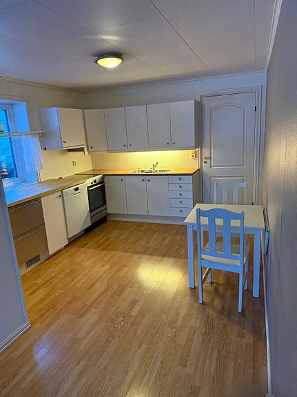Fin skikkelig leilighet 80 m2. To soverom, bad, bod,stue og kjøkken med hvitevarer.