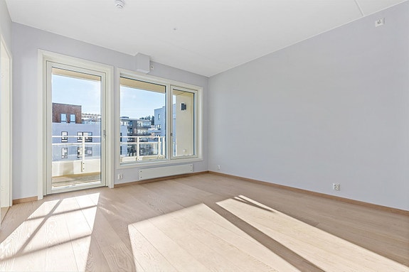 4.etg: Entre, bad, soverom og stue med åpen kjøkkenløsning. Utgang flott balkong inn mot stille fellesområde.