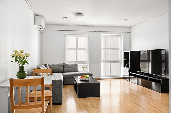 Leiligheten ligger i et rolig og sentralt område med gode kollektivforbindelser og kort vei til butikker og servicetilbud.