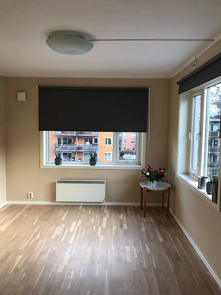 Den er plassert i 4.etasje på et hjørne mot stille gate, og har gode og luftige lysforhold.