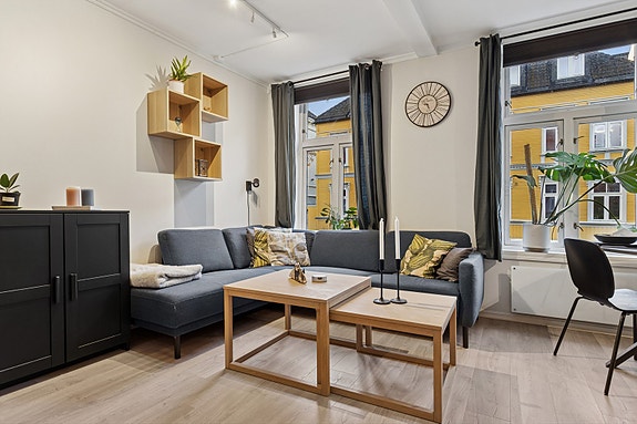 Lys og sentral leilighet med god standard midt på Møllenberg. Her bor du i en av de roligere delene av området.