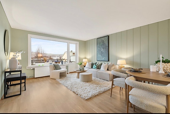 Lys og gjennomgående 3-roms |Garasje ink.| Balkong med flott utsikt|Bad fra 2022|Vv og fyring inkl.