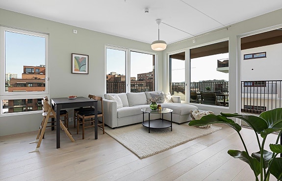 Strøken 3-roms fra 2024 med solrik balkong, garasje og heis