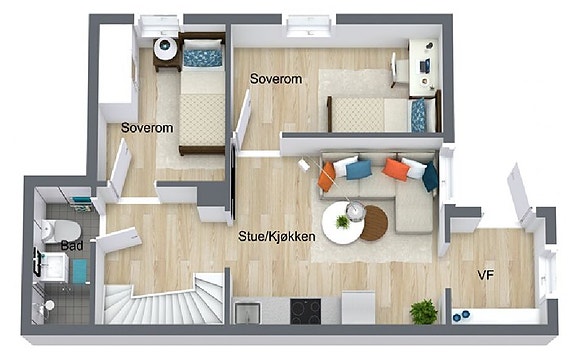 Antall rom: 3, inkludert 2 soverom