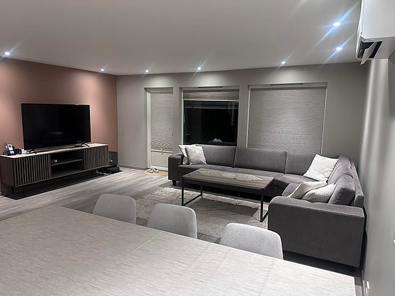 Romslig bolig over to plan med god planløsning og fine uteområder. Leies uten strøm, men inkludert vann og internet. Boligen leies ut delvis møblert og inkluderer hvitevarer som kjøleskap, stekeovn, dampovn, mikrobølgeovn, oppvaskmaskin og vaskemaskin.