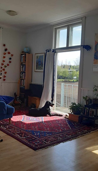 Lys og luftig leilighet m sørvendte vinduer, balkong og god takhøyde. 2 soverom, romslig bad, stue m åpen kjøkkenløsning. Hvitevarer.