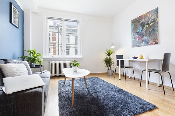 En meget sentral og arealeffektiv 1-roms leilighet med stor takhøyde. Fra leiligheten er det gangavstand til det aller meste Oslo har å tilby, samt umiddelbar nærhet til kollektivtransport (tog, trikk og buss). Noen få minutters gange gjennom Slottsparken tar deg til Karl Johans gate med et yrende sentrumsliv. Samtidig er det en rekke grønne lunger i nærheten, som f.eks. Slottsparken, Stensparken, Uranienborgparken, St. Hanshaugen og Frognerparken.