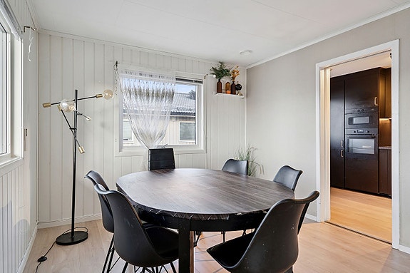 Spisestue i flukt med kjøkken